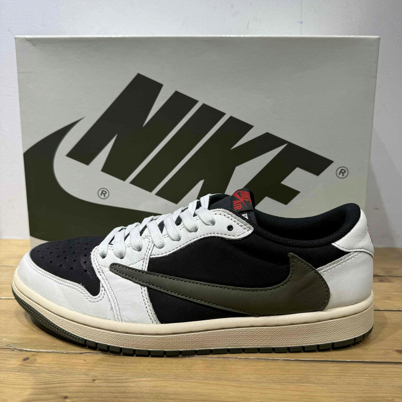 - NIKE ナイキ ×Travis Scott WMNS Air Jordan 1 Low OG Medium Olive DZ4137-106 スニーカー 白黒 Size 【30.0cm】 【新古品・未使用品】 20771133